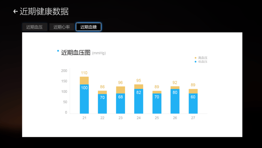 量血壓、血糖、心電等,測(cè)量完后的數(shù)據(jù)將會(huì)實(shí)時(shí)的傳送到電視、手機(jī)端app以及可